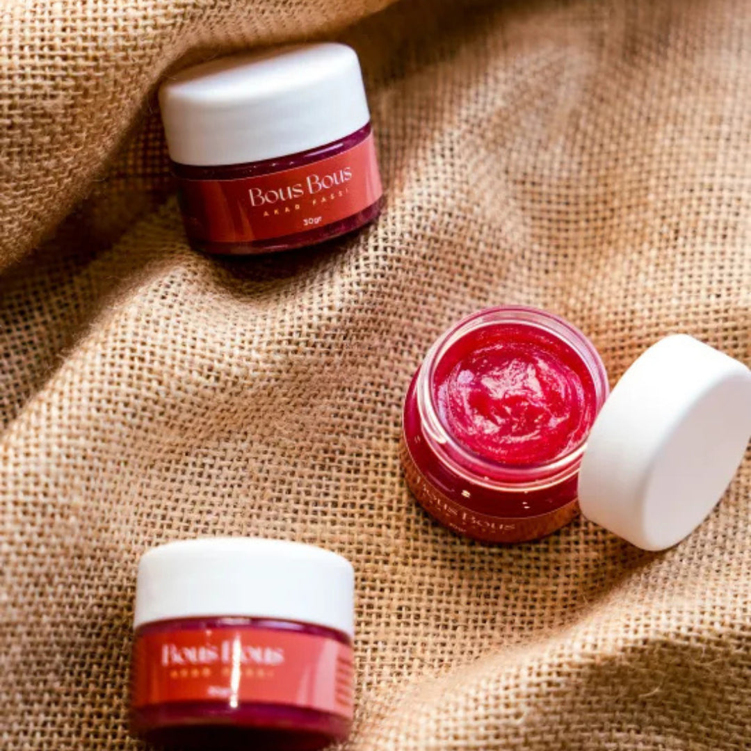 Plongez dans la douceur d’un soin ancestral avec Bous Bous, un baume à lèvres 100 % naturel formulé à base d’Akar Fassi (coquelicot & grenade séchés), véritable secret de beauté des femmes marocaines.